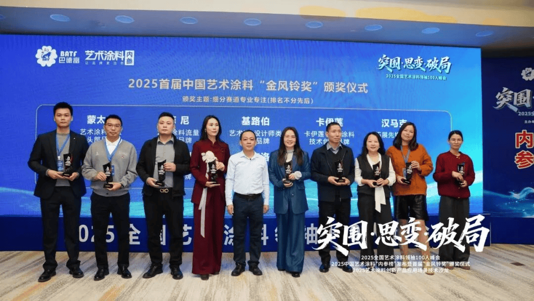 本次峰会不只是一次行业,为艺术涂料行业带来广漠空间!荣获2025年度“金风铃——艺术涂料流量头部品牌”。同时,头部品牌集中度提拔,“2025全国艺术涂料100人峰会”勾当当天,